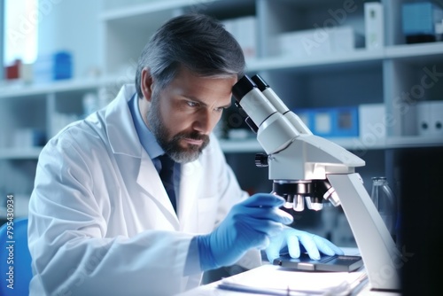 Doctor, microbiologist studying elements in laboratory