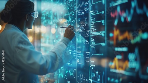 Doctor teamwork and writing on glass board for medical solution teaching and problem solving in residency Healthcare students people or professor for orthopedic training steps and mind : Generative AI