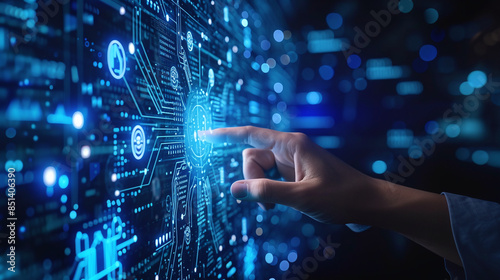 Doctor using artificial intelligence on virtual screen for medical research, future medicine healthcare laboratory concept