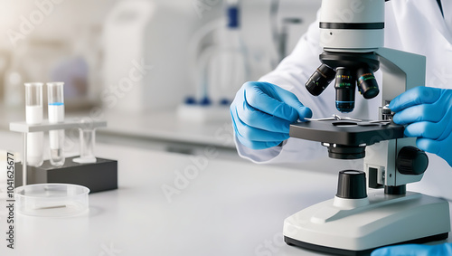 doctor working in a laboratory, Scientist Handling a Microscope in a Laboratory Setting, medical technology, biotechnology