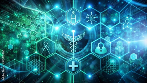 Doctor's Wisdom, Fractal Dreams: Moody and technical, blue and green, medical symbols and fractal patterns