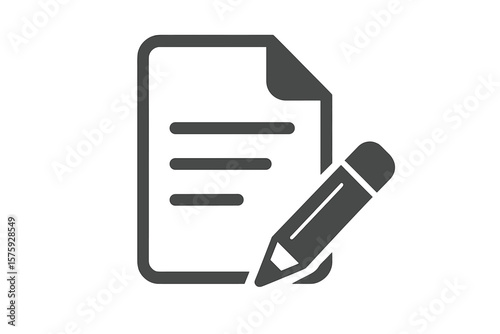 Document and Pencil Icon. Writing, Editing, Note Taking, Contract, Agreement, Application, Form, Report, Document Management, Office, Paperwork, Stationery, Flat Design, Vector Illustration