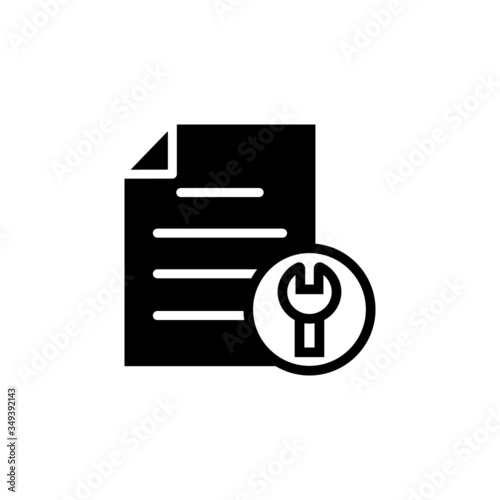 Document file page spanner tool wrench icon in black flaton white background, Vector icon