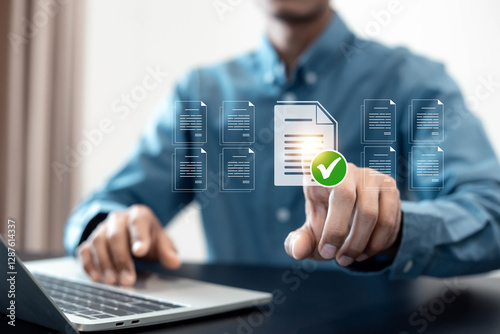 Document management concept , Process automation to efficiently manage files. Online documentation database and document management system .
