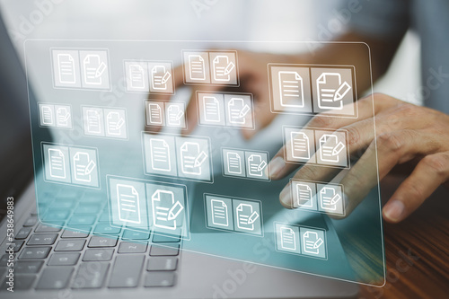 document management concept, online documentation database technology, document management design for business technology background
