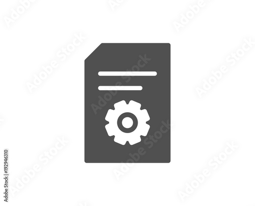 Document Management simple icon. Information File with Cogwheel sign. Paper page concept symbol. Quality design elements. Classic style. Vector