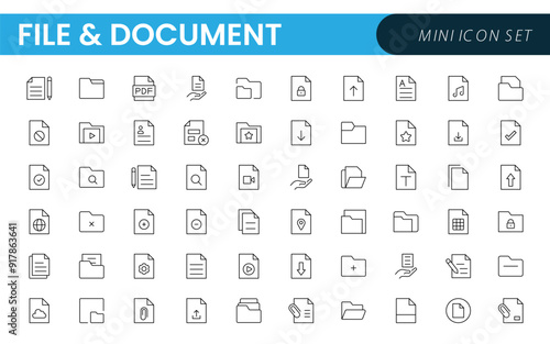 Document outline icons. Document icon set. Set of outline icons related to document, files, message, security. Linear icon collection.