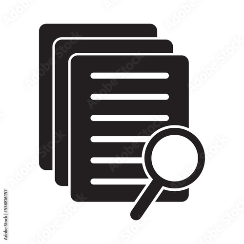 Document with magnifier loupe business concept. Scrutiny document plan icon in flat style. Review statement vector illustration on white isolated background.