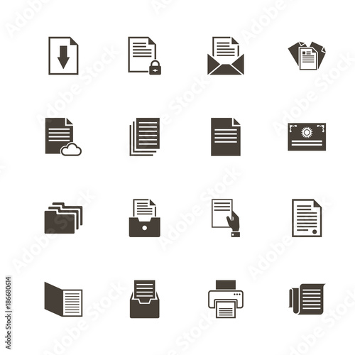 Documents icons. Perfect black pictogram on white background. Flat simple vector icon.