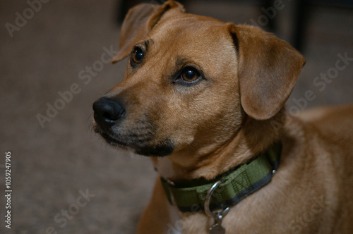 Dog looks and focuses on task
