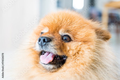dog pomeranian was waiting for his owner, animal feeling concept.