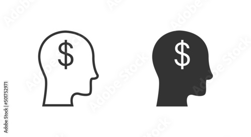 Dollar symbol in the head. Man thinking money icon. Vector illustration.