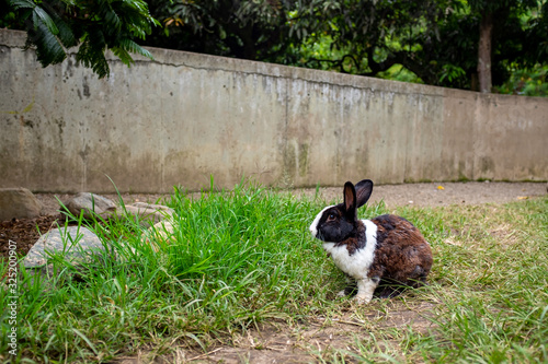Domestic Pet Rabbit (Oryctolagus Cuniculus) in Green Grass in a Public Park
