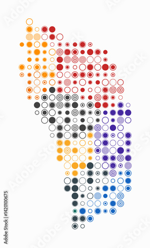 Dominica, shape of the country built of colored cells. Digital style map of Dominica on white background. Large size circle blocks. Classy vector illustration.