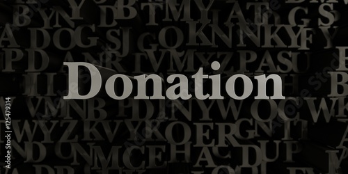 Donation - Stock image of 3D rendered metallic typeset headline illustration. Can be used for an online banner ad or a print postcard.