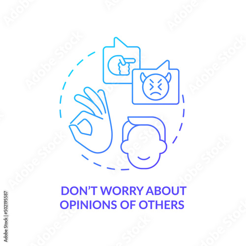 Dont worry about opinions of others blue gradient concept icon. Step to self love abstract idea thin line illustration. Self-awareness. Isolated outline drawing. Myriad Pro-Bold font used