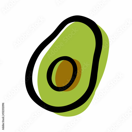 Doodle Avocado. Hand-drawn fresh natural fruit isolated on white background. Green symbol of healthy vegetarian food, diet, vitamin, breakfast, delicious snack, organic plant. Vector illustration