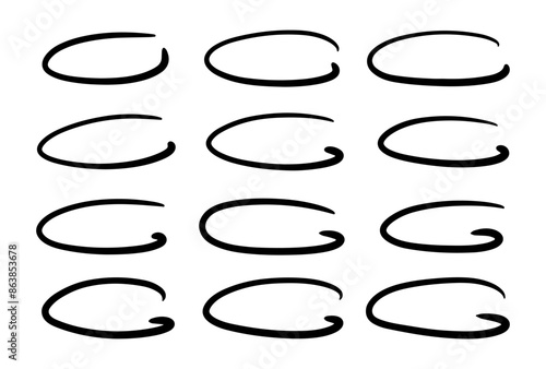 Doodle ellipses set. Scribble ovals by pen or pencil, bubbles to circle and highlight text. Sketch highlights. Handwriting horizontal ellipses isolated on white background.