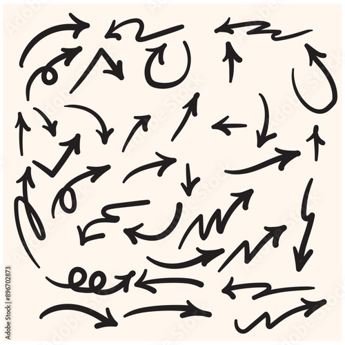 Doodle sketch style of Hand drawn lines, Arrows, circles and curves With illustration style doodle and line art