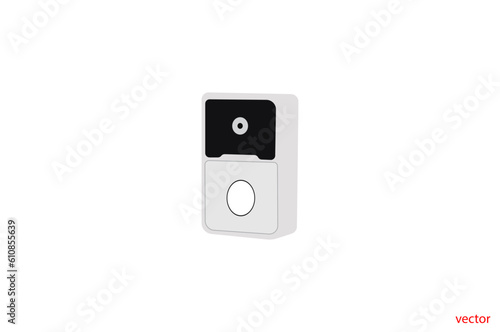 doorbell on the wall of the house with a surveillance camera vector illustration, The female hand presses a button doorbell with camera and intercom vector design for new business