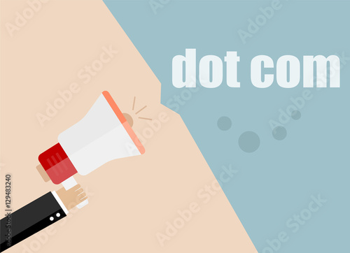 dot com. Flat design business concept Digital marketing business man holding megaphone for website and promotion banners.