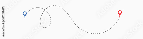 Dot line path route travel banner illustration with location map pin icon. Route location icon two pin sign and dotted line. 13