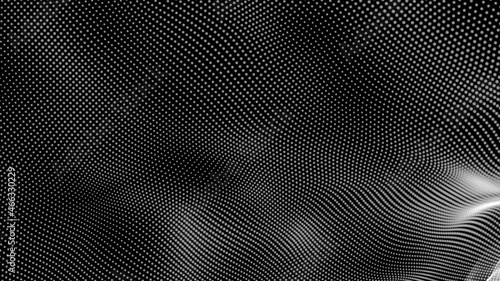 Dot white black wave technology texture background. Abstract big data digital concept. 3d rendering.