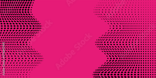Dotted black abstract halftone pink background. Dot gradient texture. Wavy dotted halftone circle. Simple dot vector illustration.