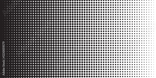 Dotted gradient vector illustration, white and black halftone background, horizontal seamless dotted lines, monochrome dots texture backdrop, retro effect. modern