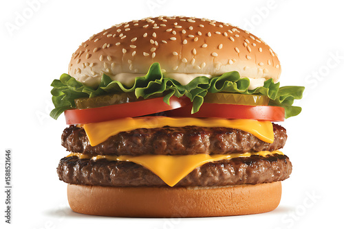 Double cheeseburger with lettuce tomato pickles and sesame seed bun hamburger beef patty