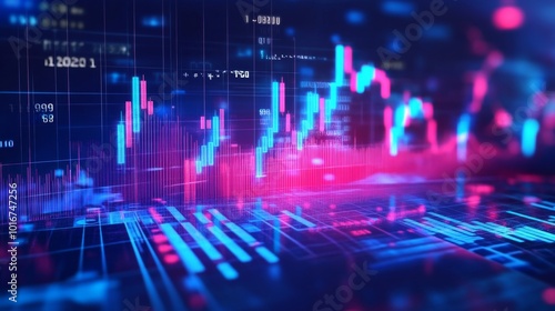 Double exposure Financial business accounting and banking.Growing virtual hologram of statistics, graph and chart. Investment of growth on currency rate.Digital marketing concept.