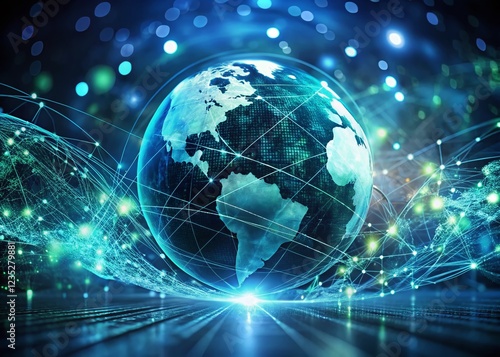 Double Exposure: Network Globe & Data Stream - Illustrating DNS Role in Internet Connectivity