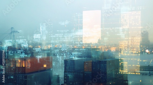 Double Exposure of Stacked Cargo Containers in Urban Environment