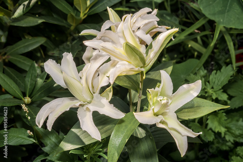 Double Oriental Hybrid Lily (Lilium hybridum) in garden