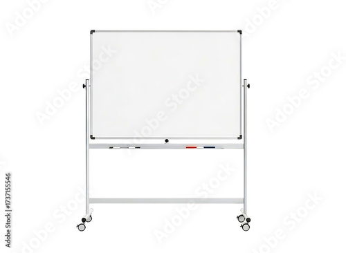 Double sided rolling whiteboard with wheels isolated on transparent background