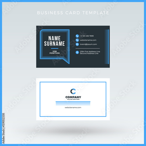 Double-sided Blue Business Card Template. Vector Illustration. Stationery Design