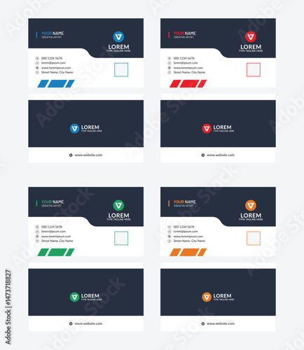 Double-sided creative business card template. Portrait and landscape orientation. Horizontal and vertical layout. Vector illustration business card (Red)