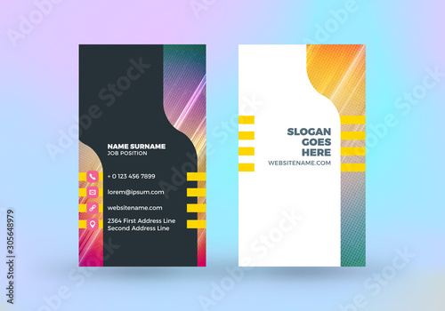 Double-sided vertical business card template. Vector mockup illustration. Stationery design. Halftone texture