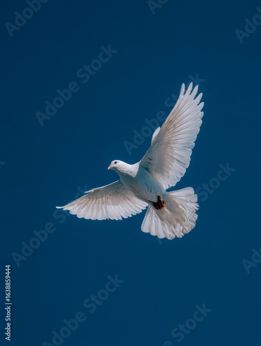 Dove of Peace Flying Against a Clean Blue Sky, Symbol of Hope and Freedom