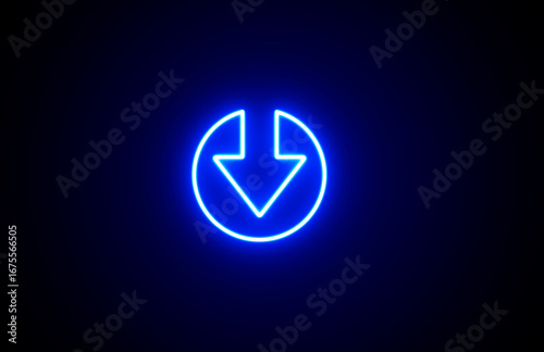 Down Arrow in circle. Neon arrow icon. Neon road, arrow symbol. Down arrow background. Color business arrow icon. Glowing arrow icon.