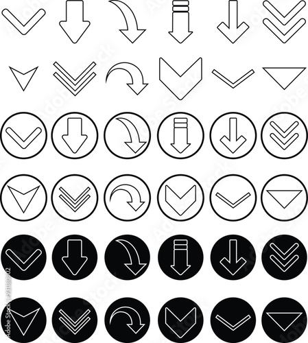 Down arrows icons Set. scroll illustration signs. Animation of arrow bouncing as it slide down. Graphic Line designs elements pictogram Suitable for app and website isolated on transparent background.