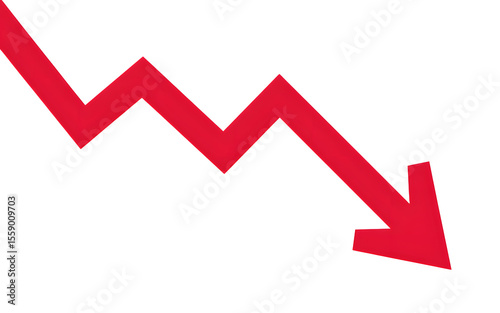 Down trend red zigzag arrow chart graph representing loss isolated on transparent background
