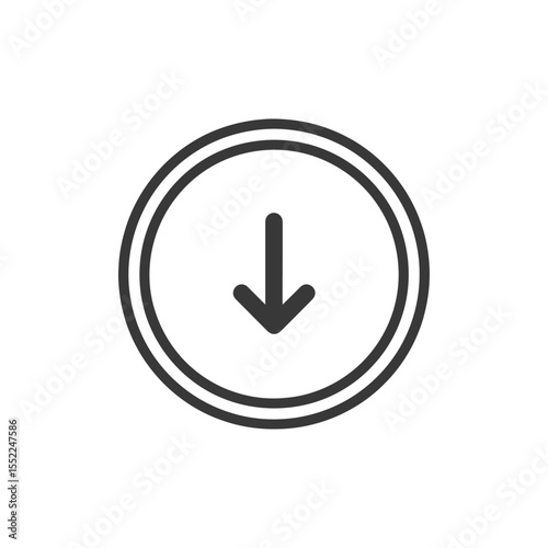Downward Arrow Icon in Double Circle, Minimalist Design on White Background