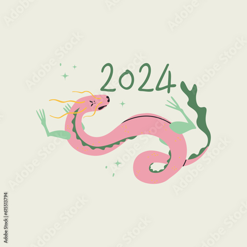 Dragon symbol of 2024. Chinese lunisolar calendar. Vector isolated illustration for design.
