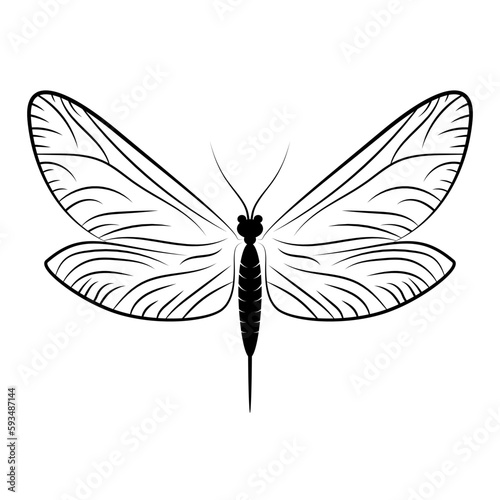 Dragonfly icon isolated. Black silhouette of dragonfly. Vector illustration.