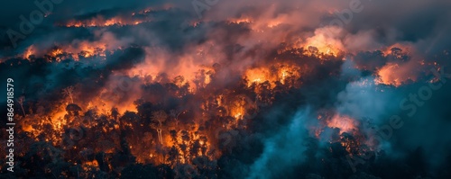Dramatic and impactful aerial view capturing the intensity of a large forest fire