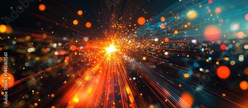 Dramatic and vivid image showcasing an explosive burst of cosmic galactic like sparkles glowing lights and radiant energy in a dynamic abstract of color and motion