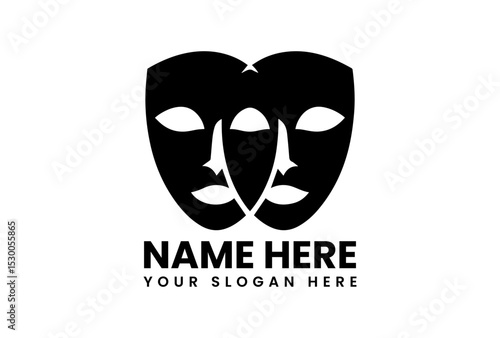 Dramatic black vector logo featuring intertwined comedy and tragedy theatrical masks representing performing arts