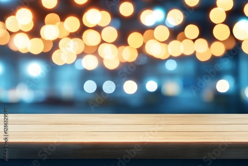 Dramatic bokeh lights in an industrial warehouse interior creating an artistic depth effect with warm golden tones and abstract workplace lighting composition in high quality stock image