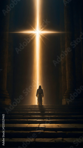 Dramatic cinematic depiction of Christ bathing in soft light creating a serene and emotional religious scene with deep symbolism